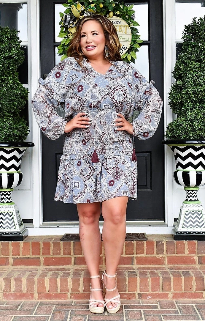 Stay pretty in print all season long with this stunning dress! We love the ruched paneling along the midsection offering such a flattering fit! This has ruffled details along the open cut sleeves adding another touch we love! You will love rocking this dress every chance you get, hurry and make it yours!