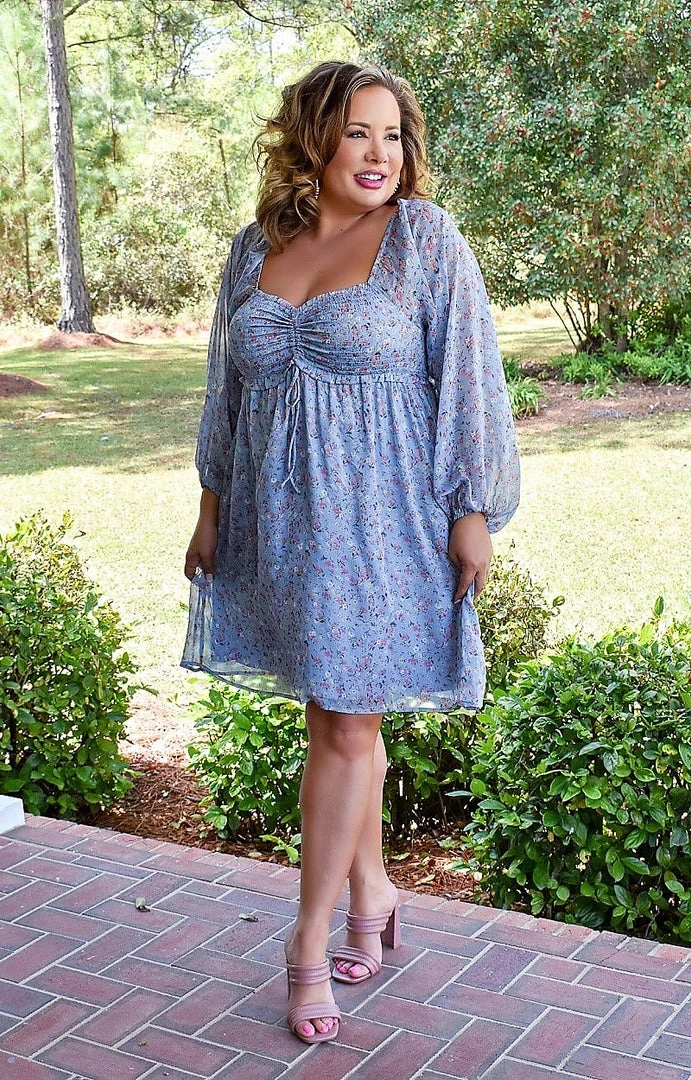 This little floral dress is a spring essential and we can not get enough of it! We love the blue background with the soft floral print throughout! The ruched paneling along the bust makes it ideal for any bust size. This features a square neckline along the front and back adding an additional touch we love! The sheer open sleeves add a touch of comfort and create an effortless look! Make this adorable dress yours and enjoy turning heads all season long!