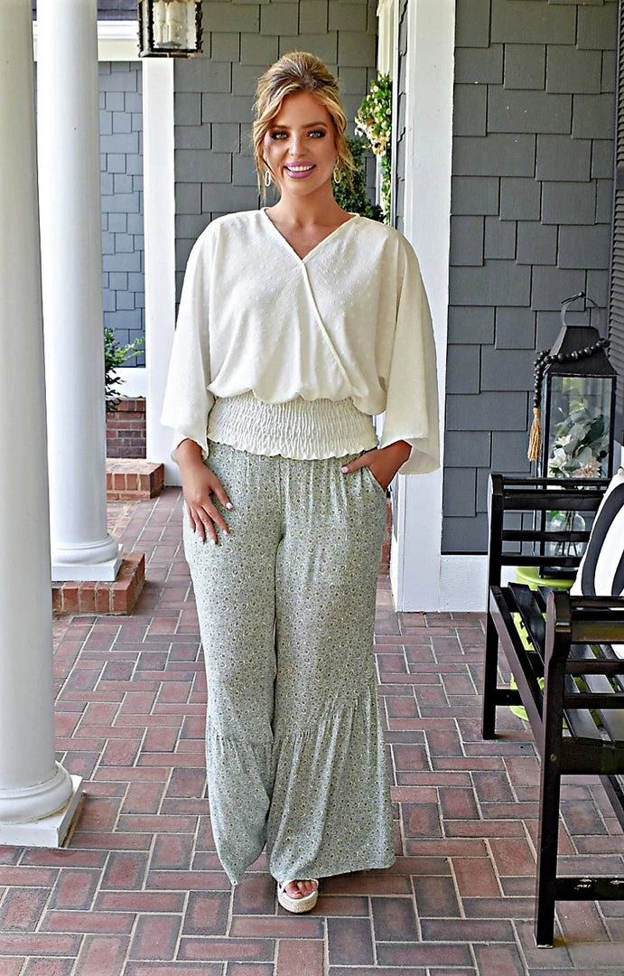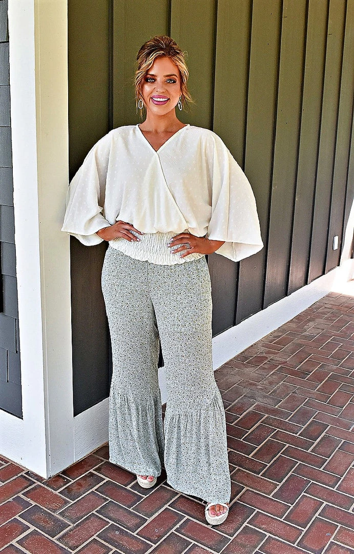 This versatile top can easily be made more dressy or casual depending on your preference. It gives the best of both worlds, while offering an open cut, yet still fitted along the bottom to show your shape off. This one is classy and chic and perfect with a variety of PPB bottoms!
