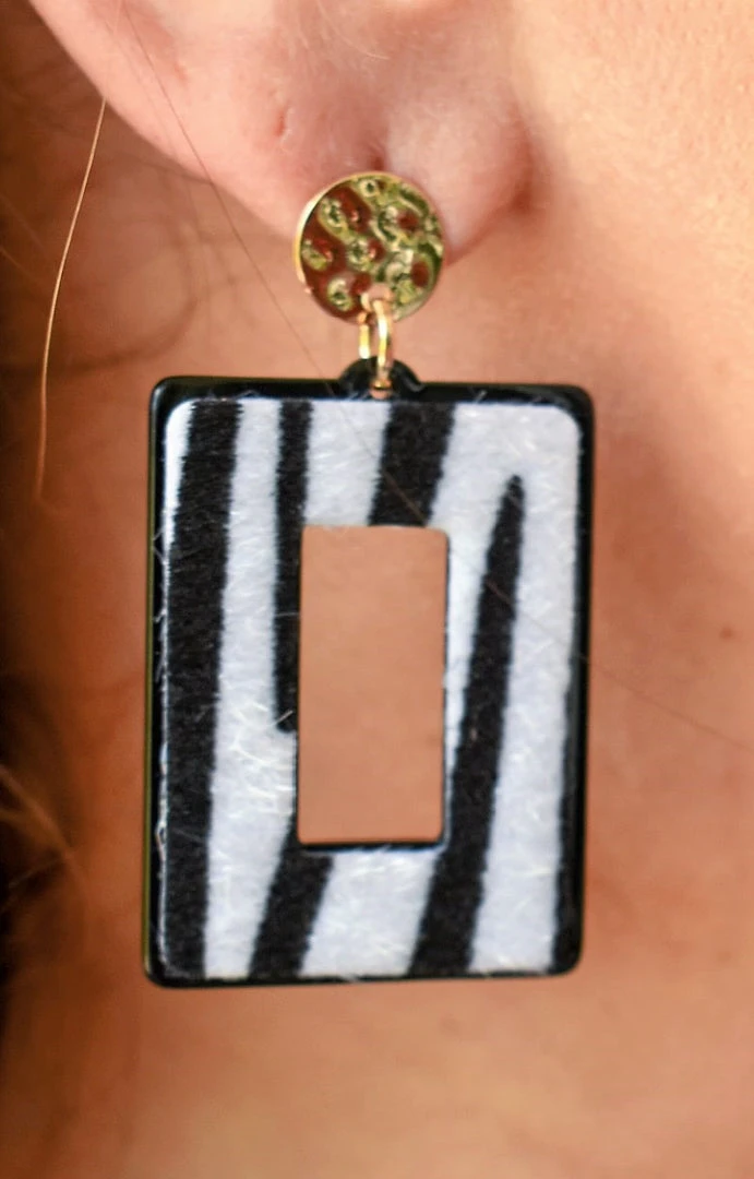 There is so much to love about this zebra print earrings! We love the square shape giving these such a unique look! You will love all the attention these earrings bring, hurry and make them yours!Â