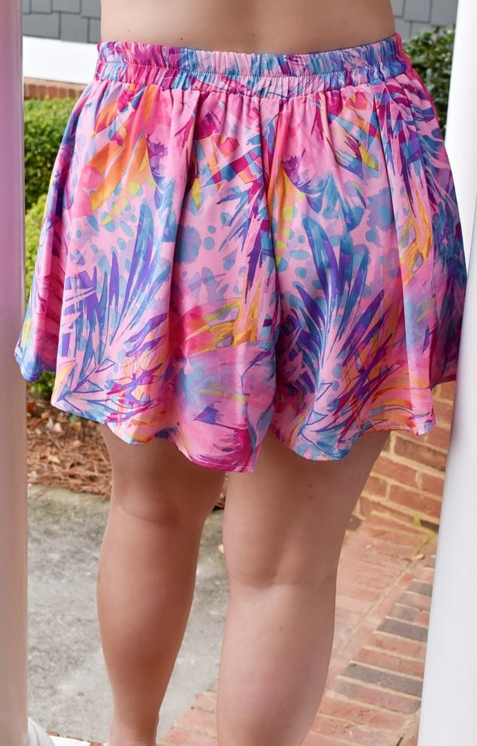 Add a splash of color to your look this season with the most fabulous printed shorts ever! We are swooning over this Lily Pulitzer inspired print along with the comfy fit of these. They have a more open cut leg so they gracefully glide over your leg without clinging. They also feature elastic along the back of the waistband to make them more comfortable and conforming to your waist. You are going to love rocking these shorts all sping & summer long!