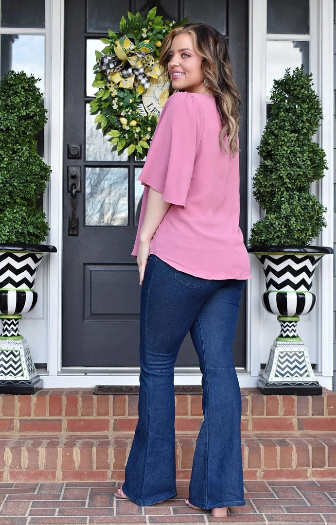 We love the simple, yet effortlessly stunning design of this top! It features the most beautiful mauve color with a flowing cut. The sleeves set it apart to bring on the drama with the open cut design. This beauty gives endless styling and pairing options making it such a versatile must have. Grab yours before it’s gone!