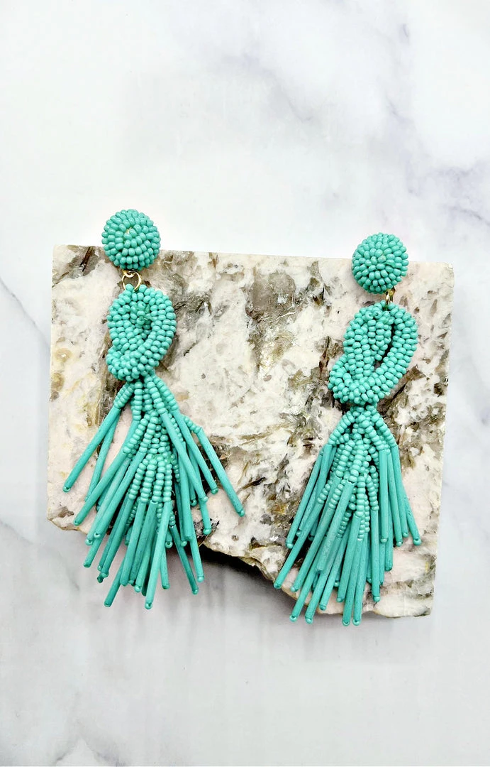 These mint earrings are everything you need this season! These feature a dramatic cascading design with beautiful beading to dress up any look. You are going to love rocking these with your favorite outfits all season long!