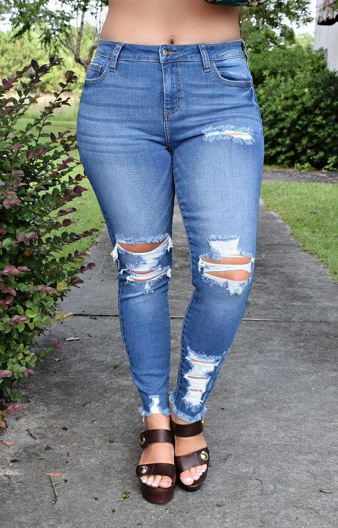 Show off your curves in these fabulous new jeans! These beauties feature distressed detailing throughout with a stretchy design to flatter your shape like no other! You are going to love rocking these all year long with your fav PPB tops!