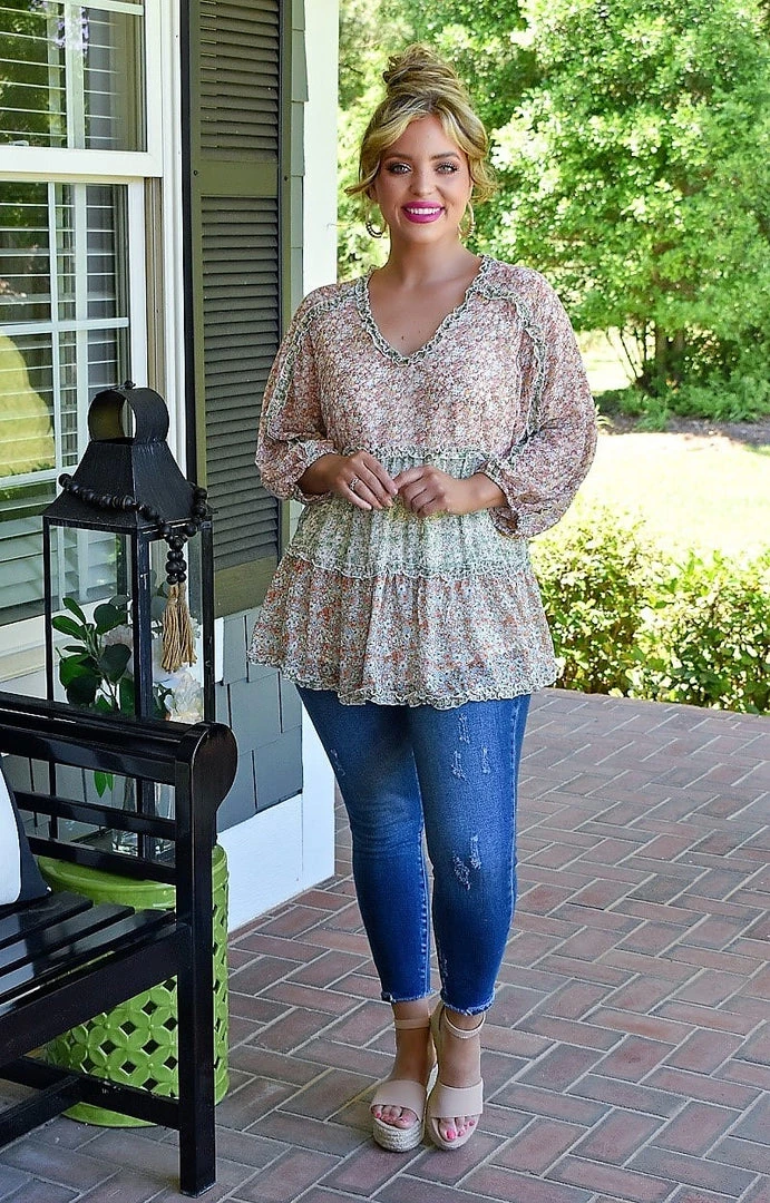 We are swooning over this adorable and comfy go to top that you are sure to love for your next afternoon look! It features a flowing cut with a fully lined bodice. The ruffle accents and floral prints give this one that girly and dainty vibe. Throw this on with your favorite jeans and get ready to feel fab all day!