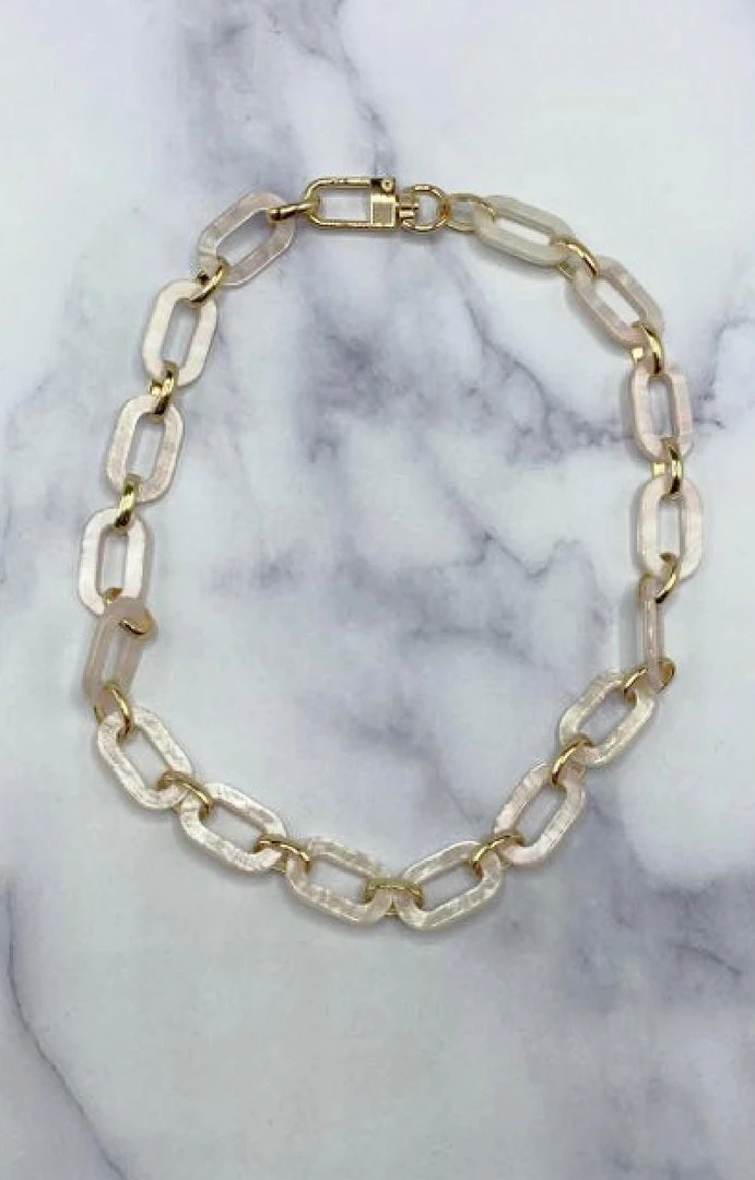 We are obsessing over the unique peach and gold coloring throughout this chain necklace. We love the light weight design making this ideal for all day wear! Make this yours and enjoy the endless options it offers!