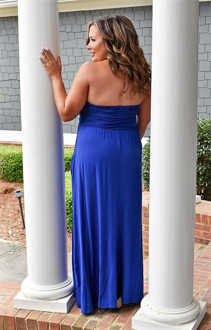 This go to maxi is at the top of our wish list this season! This beautiful maxi features a bold, vibrant royal blue that insures you stand out amongst the rest for all the right reasons! This dress features a comfy and stretchy material with a breathable feel. This one is sleeveless with cinched in detailing along the waist to flatter your shape. You need this stunner!