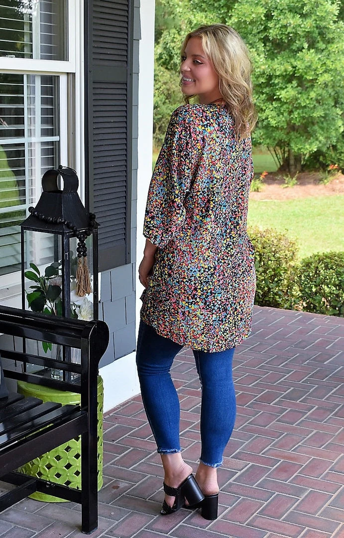 Get ready to layer in style with our favorite go to kimono! This kimono features a bold and vibrant print with fun colors to make your look stand out in style. This one features a lightweight design with a more open cut for comfort. Throw this on with your favorite go to looks and get ready to create so many trendy, layered outfits this season!