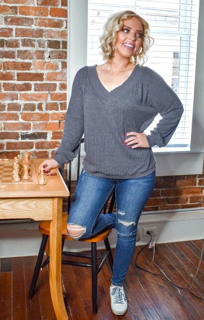 This top + our new statement sneakers truly are the cutest combination ever! This one is more open cut with a relaxed fit and ribbed detailing to give it a textured feel. The banding along the bottom allows it to still define your shape and gives the most adorable look. Stay comfy and stay cute and make this one all yours!