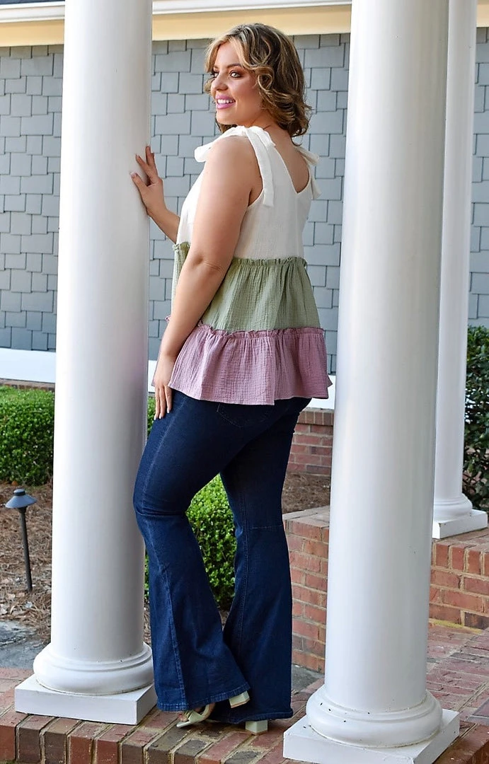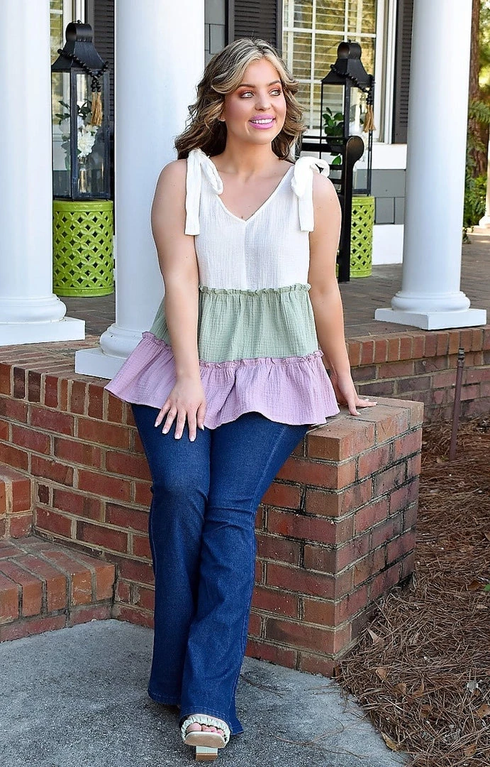 The colors in this fun top are absolutely beautiful! This top features an adjustable strap design that allows you to customize it to your personal preference. This colorblock top also has a thicker strap allowing a regular bra to be worn with this one as well. The ruffle details throughout add a girly touch. You need this one in your wardrobe!