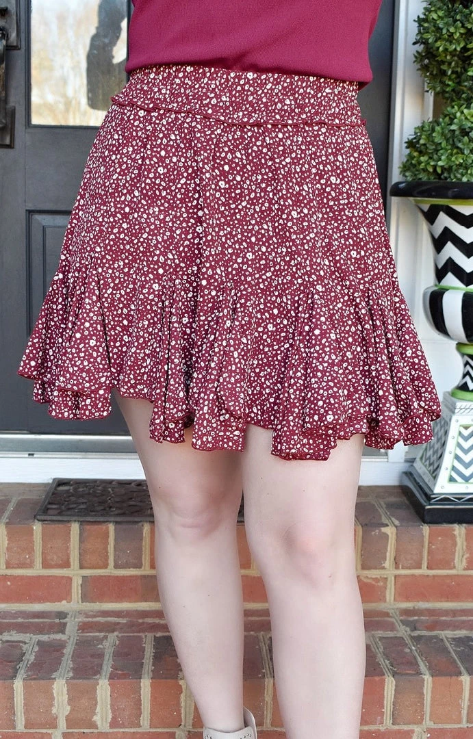 We always love a fun and flirty skirt that you can rock with your favorite go to tops. This one has a thicker, elastic style banding that flatters the mid section. The cute ruffle trimmed bottoms add the cutest little touch to set your apart. You are going to love this one!