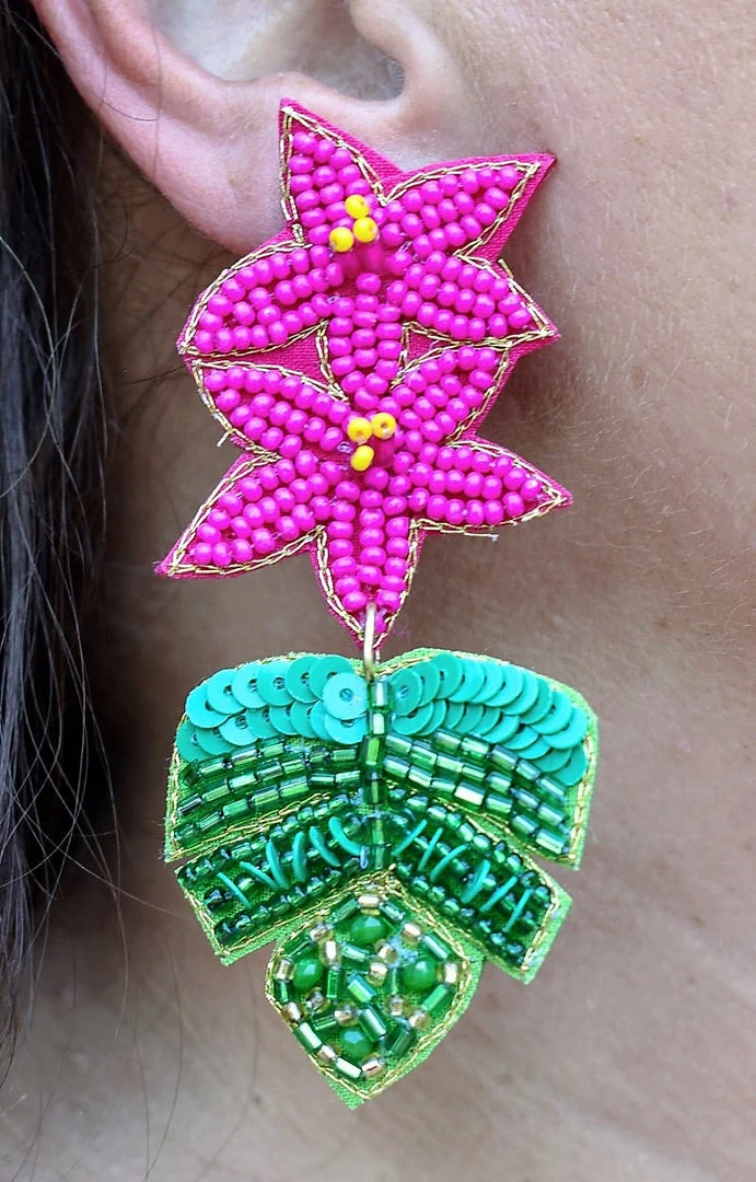 There is so much to love about these stunning beaded earrings! We love the floral base with the palm trim truly giving these the look of summer! You will love all the attention these earrings bring! Hurry and make them yours!