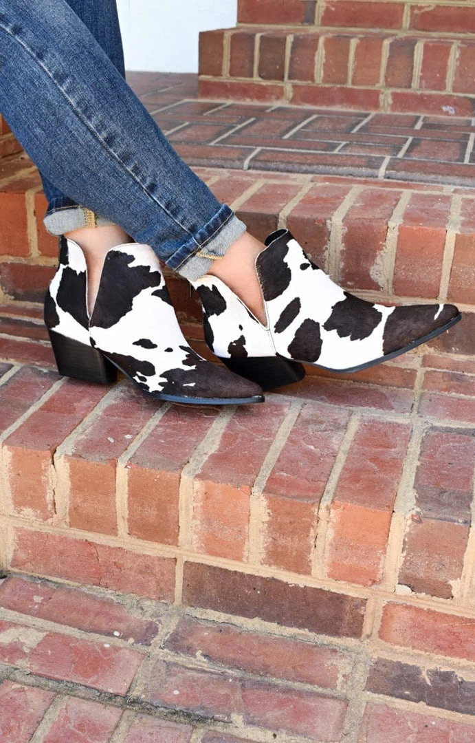 SKU: shu-shop-yuri-96521-6830858797145 Categories: Booties, Boots, SHOES Tags: Ankle Booties, Black, Boots, Cow Print, Heels, SHOES, Shu Shop, Taupe