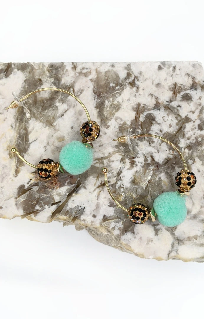 The cutest statement earrings are here and begging to be added to your closet! We love the gold hoop design with the leopard beaded details and the cutest mint pom pom detail lining the trim! You will love rocking these little earrings every chance you get!