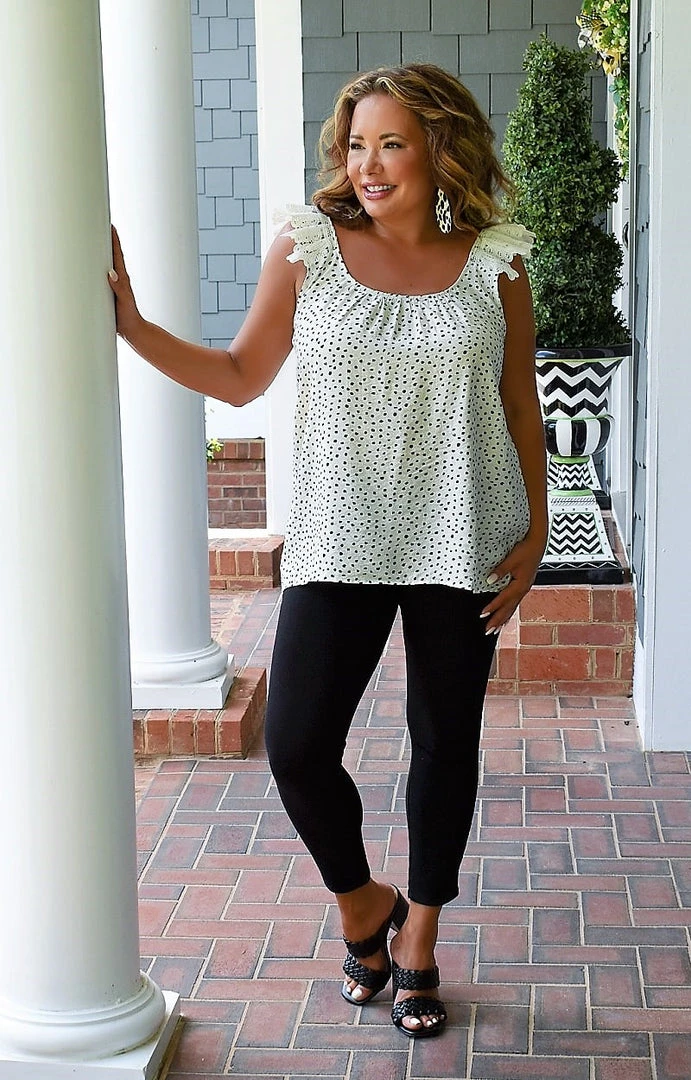 This little top pairs perfectly with our favorite black pants! This one has no stretch in the overall material, but does have a more open cut fit. The adorable detailing along the sleeves adds such a cute touch to make it pop even more. Throw this on with our new must have earrings and a get ready to look absolutely PPB fabulous no matter where you go!