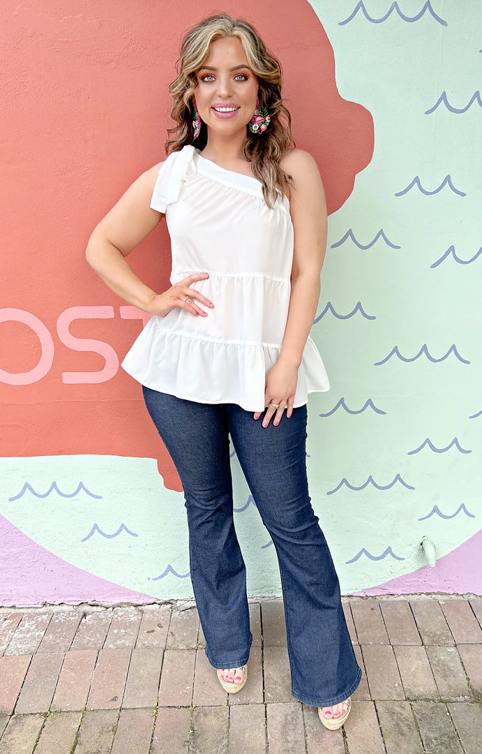 This classy little top is simple, yet totally eye catching. This one features a one shoulder design with a tie detailing along the neckline to add an extra pop of flare. There is no stretch in the overall material, but it does run true to size with a flowing cut. Grab yours before it’s gone!