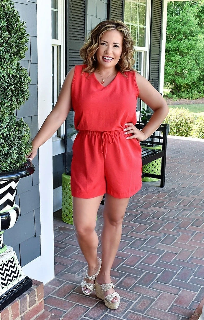 Stay bold and sassy all Summer long in this head turning romper. This stunner features a beautiful red with an elastic style waistband to cinch in your shape for that hourglass illusion. It even has pockets! Throw this on with statement accessories and get ready to turn heads all day!