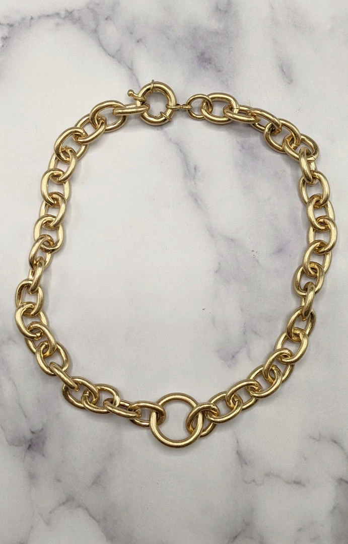 This choker style necklace is sure to be your new favorite! We love the gold color with the clasp design sure to keep everything comfortable and secure. You will love mixing and matching this with a variety of looks this season!Â