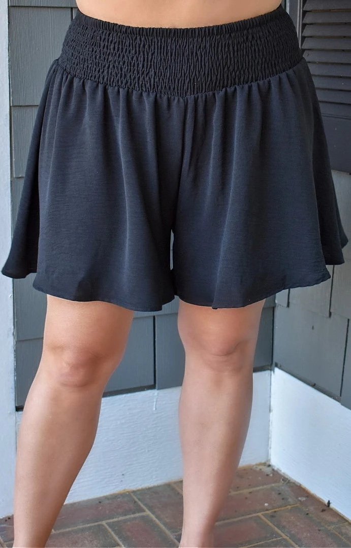 These little shorts are absolutely adorable with your favorite print tops! These have a more open cut design along the leg area to give an added element of comfort. The elastic style waist band shows off the waist while adding a stretchy feel. You need these!
