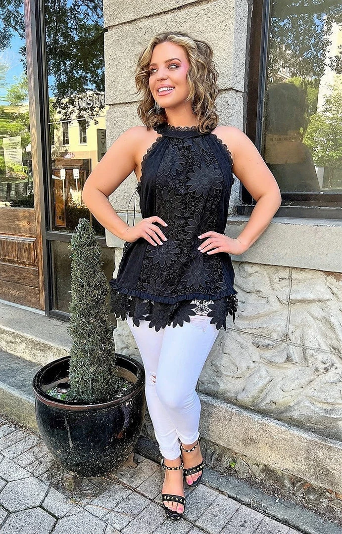 The lace detailing in this one is so classy and chic, especially when paired with a white pant. This one runs true to size with a more open cut. If you need the perfect go to option to dress up any look, then this one is definitely on your must have list!